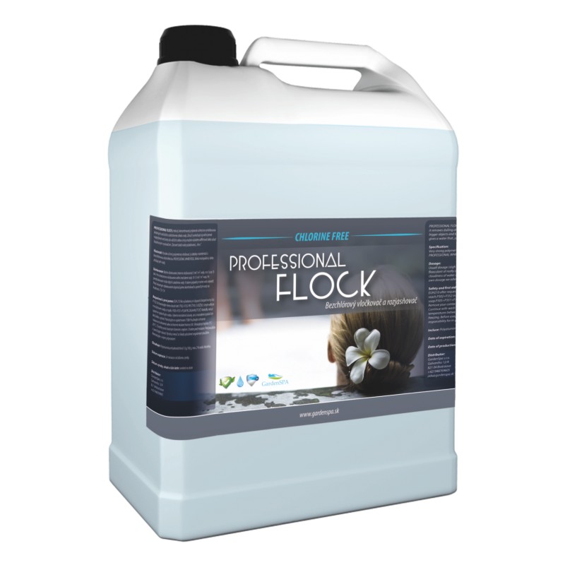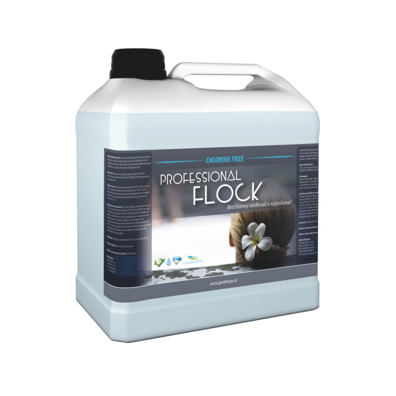 PROFESSIONAL FLOCK je tekutý, koncentrovaný produkt určený na vyvločkovanie drobných nečistôt a odstránenie zákalu bazénovej vody a vody vo vírivke. Združí (vyvločkuje) aj veľmi jemné rozptýlené nečistoty do väčších celkov a tieto je možné následne odfiltrovať, alebo odsať bazénovým vysávačom. Zároveň dodá vode požadovanú „priehľadnosť a iskru".