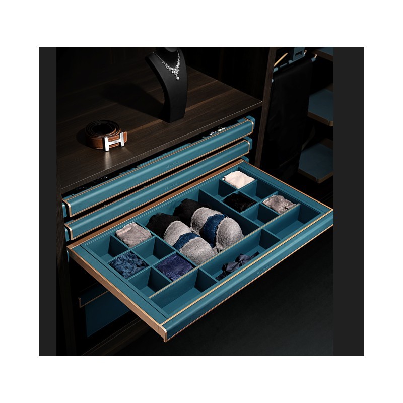 Perfektné riešenie prináša elegantne vyzerajúci kožený organizér na spodné prádlo alebo ponožky.Materiál: kožaRozmery: kód 706011: 600mm -564x475x90mmkód 706012: 700mm -664x475x90 mmkód 706013: 800mm -764x475x90 mmkód 706014: 900mm -864x475x90 mm V cene sú výsuvy Hettich