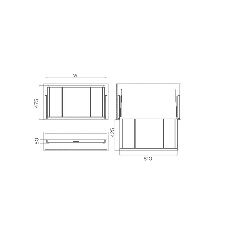 Rozmery: kód 706001: 600mm -564x475x50mmkód 706002: 700mm -664x475x50mmkód 706003: 800mm -764x475x50mmkód 706004: 900mm -864x475x50mmV cene sú výsuvy Hettich