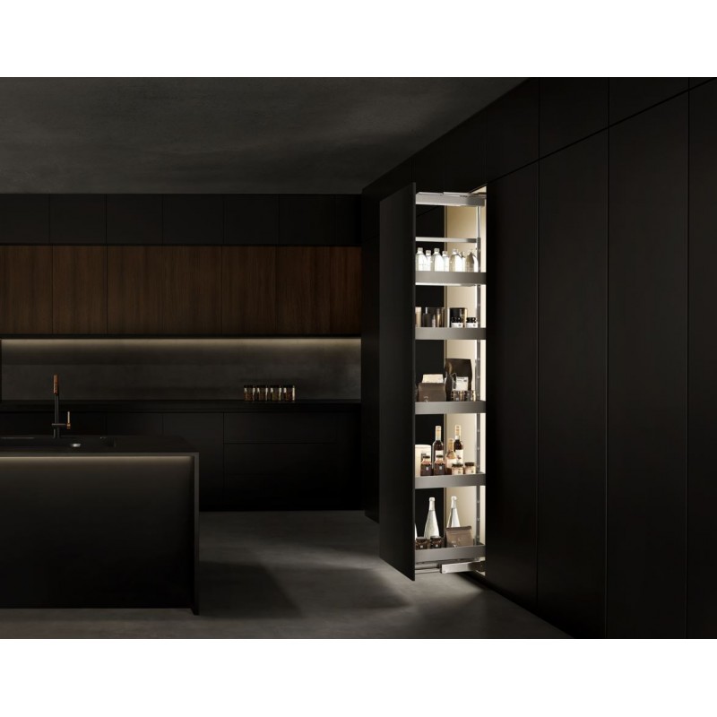 Vysúvací systém do šuflíka so soft close, ktorý uľahčí organizáciu aj v úzkych priestoroch vašej kuchynskej linky.