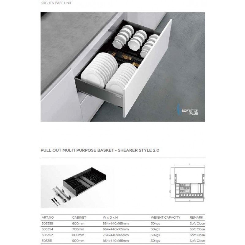Delený úložný priestor na rôzne druhy riadov. Multifunkčný- pre ľahké skladovanie a manipuláciu.