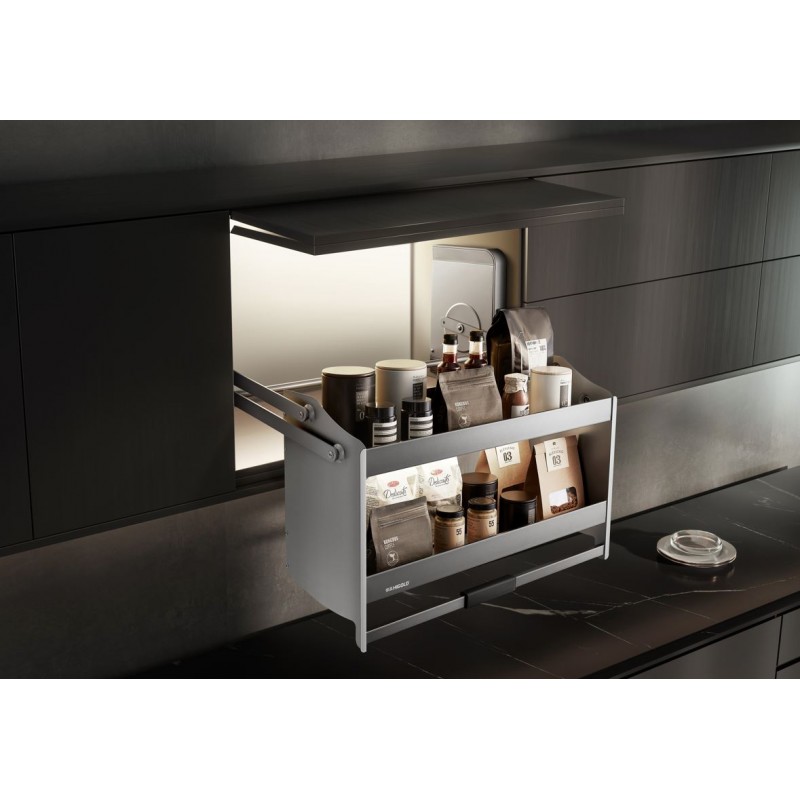 Sklopný systém do vrchnej skrinky ktorý vám pomôže pri výbere potravín.
