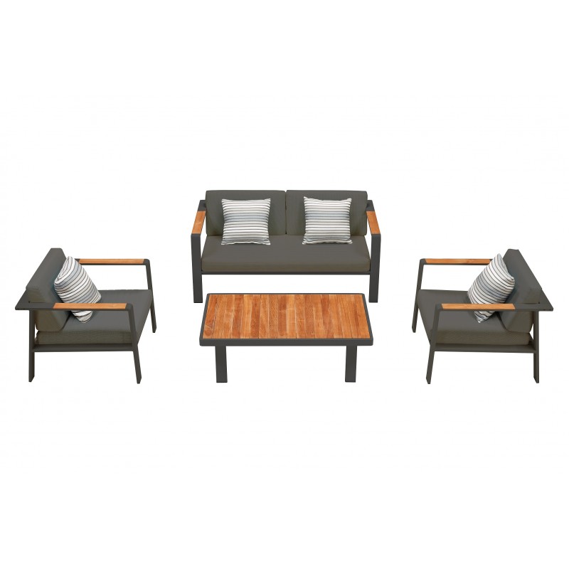 Kolekcia Nofi pozostáva zo sedacej súpravy, modulárnej sedacej súpravy, jedálenskej súpravy, barového setu, ležadla a hojdačky. Je to jedna z kolekcií, ktorá má kompletnú zostavu, aby vyhovela všetkým druhom životných nárokov. S drevenými elementmi, ktoré sú inštalované na podrúčkach a stolových doskách a s jemnými, vzdušnými matracmi, Nofi ukazuje jednoduchosť ale nikdy nestráca svoju pohodlnosť. Pre ešte väčšiu elegantnosť Vám túto zostavu predstavujeme aj v čiernej farbe.
