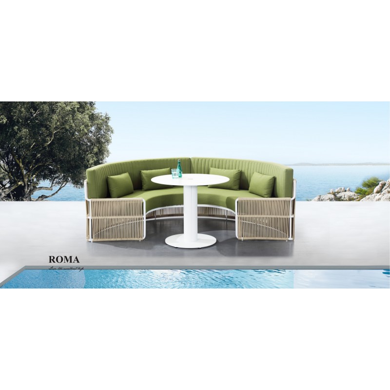 S čoraz častejším používaním moderných elektronických vymožeností sa ľudia stávajú čoras viac samostatnejšími. Kolekcia Roma má pripomenúť ľuďom pocit blízkosti v kruhu priateľov a rodiny. Zakrivený tvar umožňuje kontaktné sedenie a obsiahne osem osôb. Existujú dve hlavné alternatívy tejto kolekcie - jedna nás zaujme svojím pravidelným polkruhovým tvarom a druhá jeho väčším prevedením. Ktorá z nich sa Vám páči viac?Roma sa dokonalo hodí do domácich ale aj komerčných priestorov, pokiaľ ide o rôzne použitia materiálov a farebnou inováciou. RozmeryPravý sed - 830*1740*730mmĽavý sed - 830*1740*730mmStolík - 895*755mm