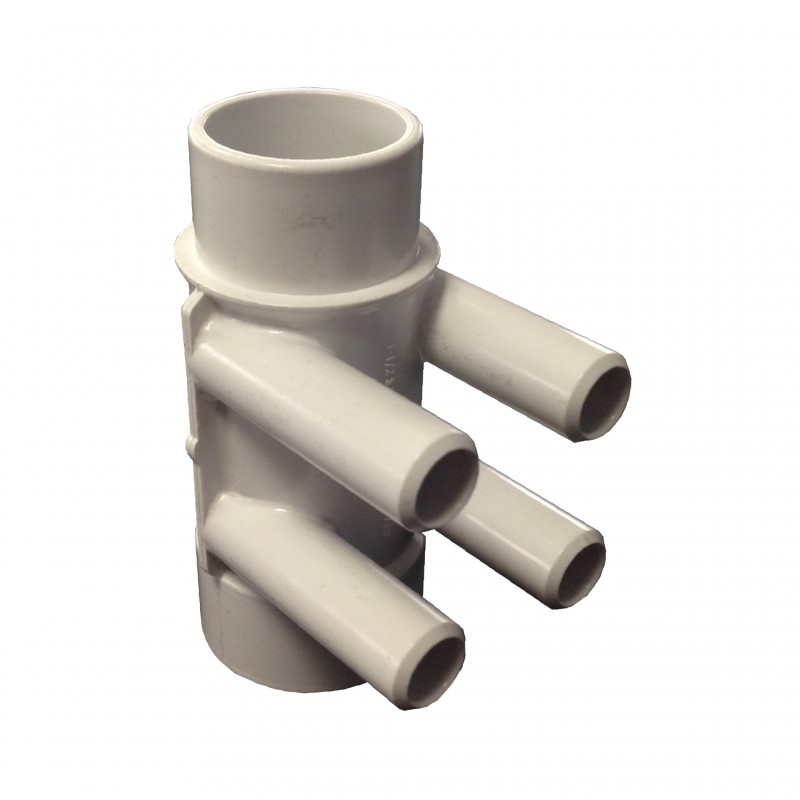 Tento vodný rozdeľovač je vyrobený z PVC materiálu, ktorý je odolný voči chemikáliám, má minimálnu hmotnosť a vysokú pevnosť. Je vhodný napríklad na použitie do víriviek, bazénov či zavlažovania. Hladká vnútorná úprava zabezpečuje zníženie trenia a predchádza zachytávaniu rôznych čiastočiek a materiálov.Inštalácia lepením. Rozmery:vstup vnútorný Ø 48 mmvýstup vonkajší Ø 48 mm4 x port vonkajší Ø 20 mmMateriál: PVCFarba: biela