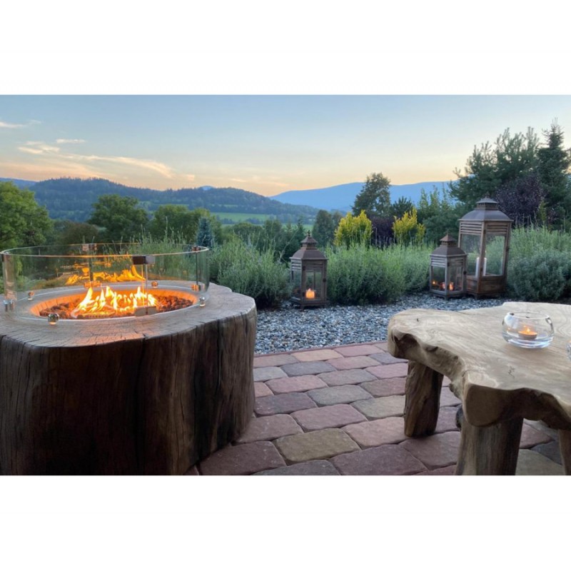 Nebudete veriť že nieje z dreva. Dokonalý dizajn stola v prevedení dreveného klátu s prirodzeným ohňom zahreje každú romantickú dušu.